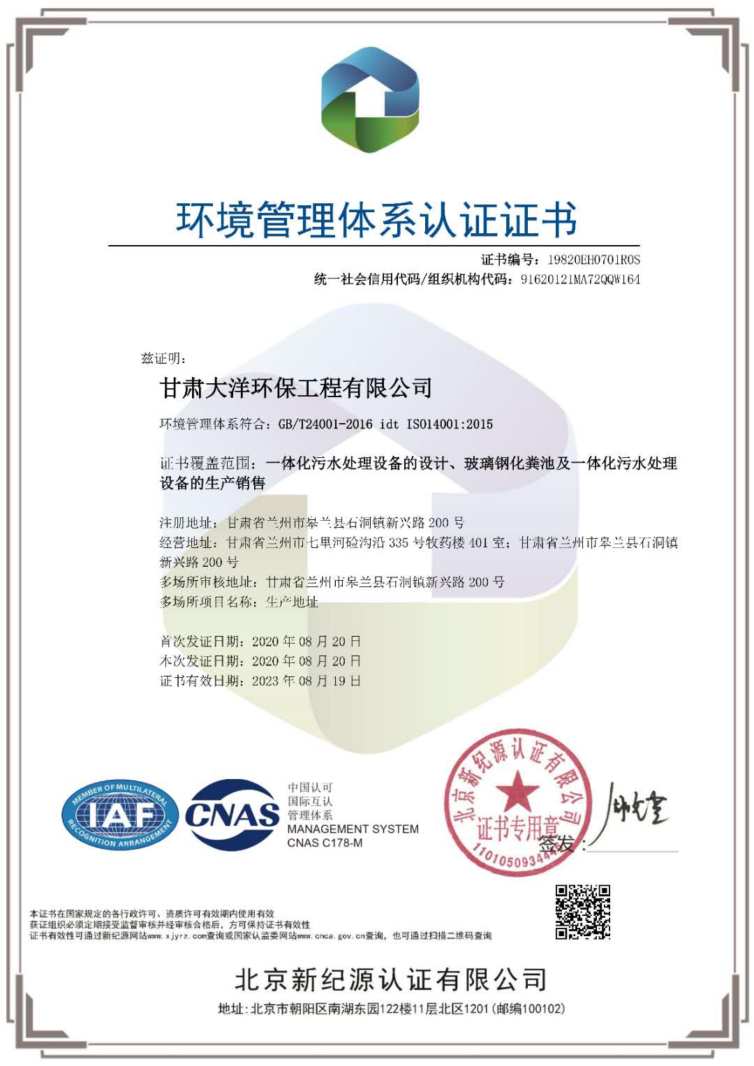 甘肃大洋环保工程有限公司专业从事于兰州一体化污水处理解决方案,欢迎来电咨询我们。